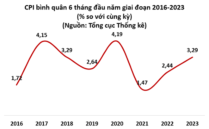 Thực tế, CPI bình quân 6 tháng đầu năm 2023 tăng 3,29% so với bình quân cùng kỳ năm 2022. Trong đó, giá gạo trong nước tăng 2,53% theo giá gạo xuất khẩu đã tác động làm CPI tăng 0,06 điểm phần trăm.
