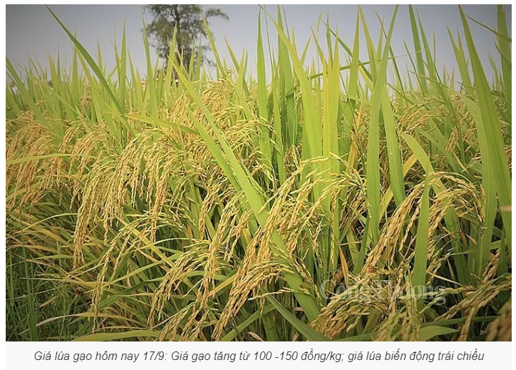 Giá lúa gạo hôm nay 17/9 tại khu vực Đồng bằng sông Cửu Long tăng với gạo nguyên liệu và thành phẩm. Giá lúa biến động trái chiều từ 100 – 200 đồng/kg.