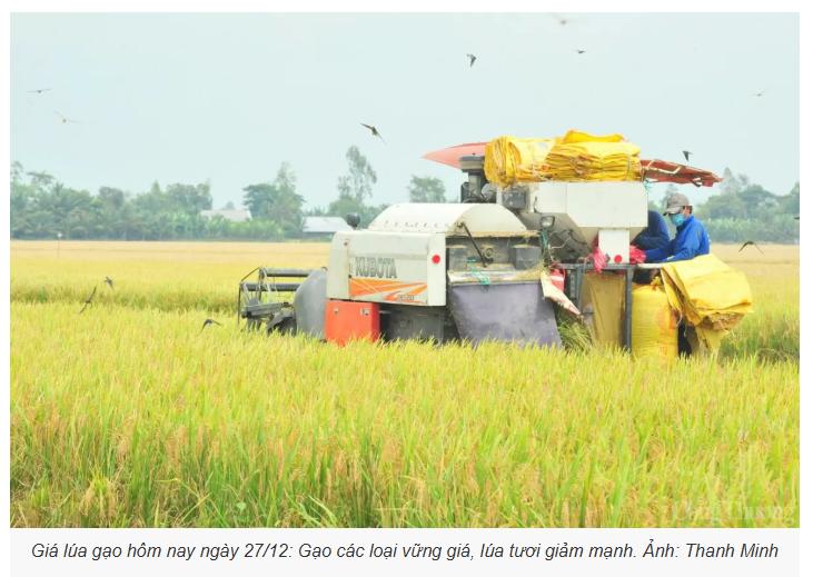 Giá lúa gạo hôm nay ngày 27/12 tại khu vực Đồng bằng sông Cửu Long không biến động nhiều, thị